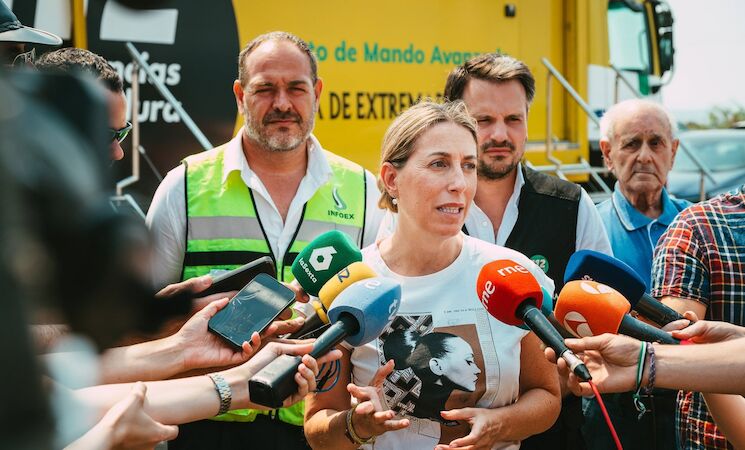 La jefa del ejecutivo extremeño ha asegurado que, de acuerdo con las demandas de los profesionales sobre terreno, se necesitan más medios aéreos, más medios terrestres y más personal de la UME para que la situación que atraviesa Extremadura, con varios incendios simultáneos, pueda finalizar lo antes posible.