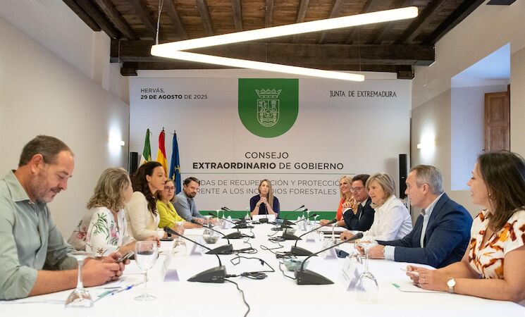 El Consejo de Gobierno extraordinario celebrado este viernes en Hervás ha aprobado un conjunto de actuaciones destinadas a la recuperación de las zonas afectadas por los incendios forestales de este verano, así como a reforzar las políticas de prevención en el medio rural.