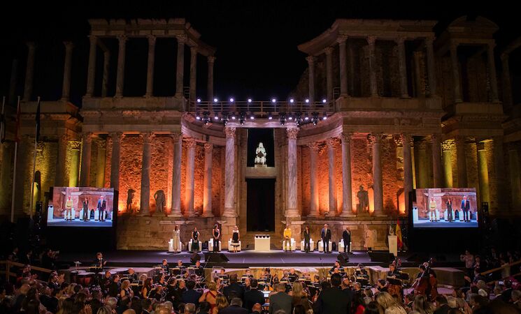 Las Medallas de Extremadura se han entregado en la noche de este domingo, víspera del Día de Extremadura, en una gala en el Teatro Romano de Mérida, a la que han asistido las principales autoridades de la región.