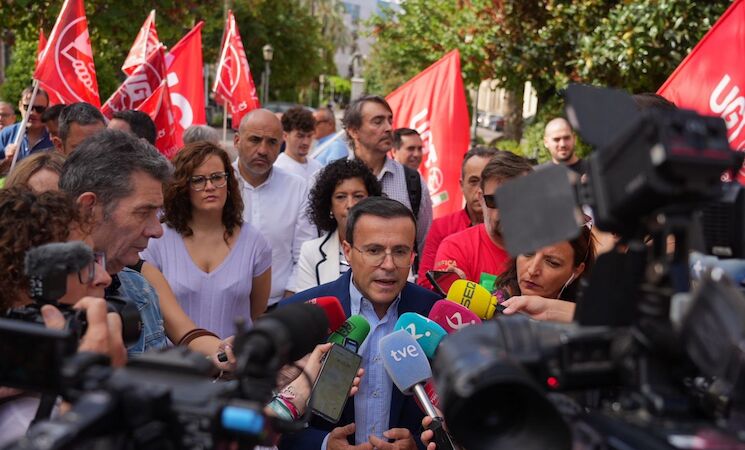 El secretario general del PSOE de Extremadura, Miguel Ángel Gallardo, ha defendido este miércoles la reducción de la jornada laboral en la concentración sindical celebrada en Badajoz, donde ha recordado que los socialistas "defenderán siempre" la implementación y mejora de los derechos de los trabajadores y trabajadoras.