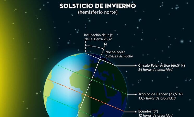 Este día --el domingo-- será el día del solsticio de invierno, la jornada más corta del año. En la latitud de Madrid, tendrá una duración de nueve horas y 17 minutos (en comparación, el solsticio de verano --día más largo del año-- fue el 21 de junio y duró 15 horas y tres minutos).