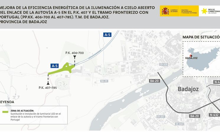 Las obras tienen por objeto modernizar la iluminación del tramo final de la A-5 en el límite con Portugal, en línea con la Estrategia de Eficiencia Energética de la Red de Carreteras del Estado, que busca reducir el consumo energético un 50 por ciento entre 2022 y 2028. La actuación dará cumplimiento al Real Decreto 1890/2008 de eficiencia energética en alumbrado exterior y a la Orden Circular 36/2015 sobre iluminación de carreteras.
