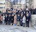 Ante las puertas de la sede de la Presidencia de la Junta, gran parte del Ejecutivo extremeño en funciones, con la presidenta, María Guardiola, a la cabeza