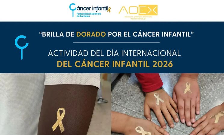 En esta línea, la Asociación Oncológica Extremeña, en colaboración con sus delegaciones y centros educativos de la comunidad, han desarrollado, durante la semana del 9 al 13 de febrero, la actividad 'Brilla de dorado por el cáncer infantil', en la que el alumnado ha participado luciendo prendas y complementos dorados, utilizando los tatuajes temporales del lazo dorado, elaborando mensajes en la cadeneta de pensamientos positivos y formando lazos humanos como símbolo de unión y esperanza.
