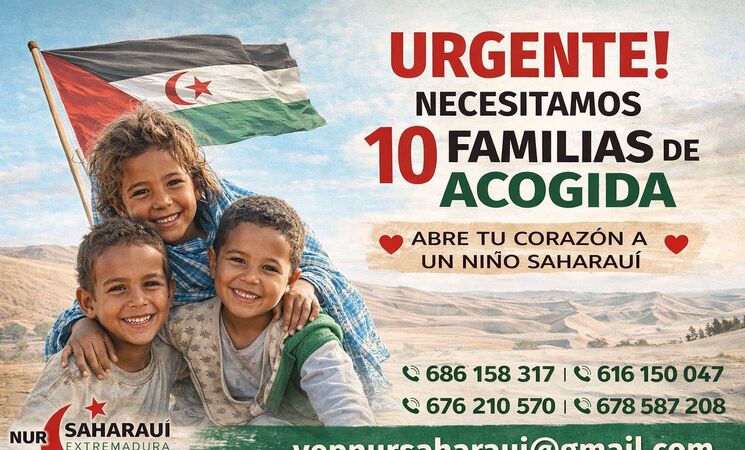 Y es que, a pesar de la gran respuesta solidaria de muchas familias extremeñas, la asociación hace un llamamiento urgente a la ciudadanía, ya que el plazo se acorta y estos 10 menores aún no tienen un hogar donde pasar el verano, según informa NUR Saharaui Extremadura en una nota de prensa.