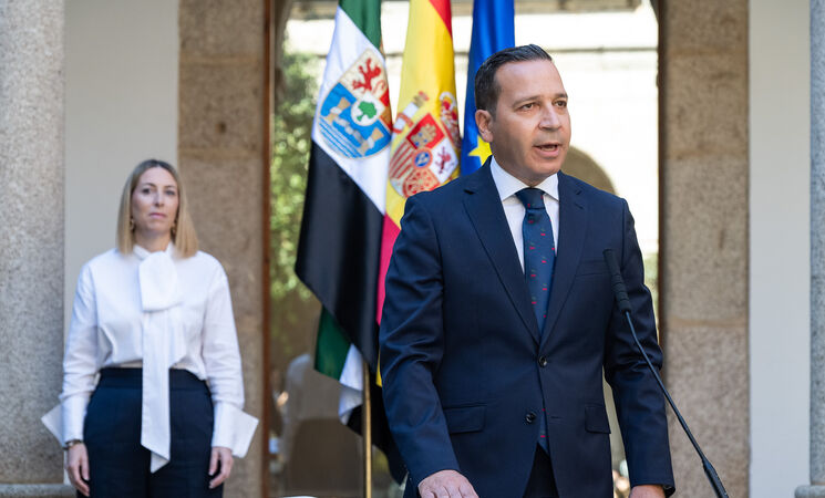 En su intervención, el nuevo vicepresidenta ha agradecido a la presidenta de la Junta, María Guardiola, el trato que les "ha brindado desde el primer momento, así como a los consejeros que repiten" en el Gobierno extremeño, en el que se han "sentido acogidos desde el primer instante que hemos puesto el pie en esta casa".