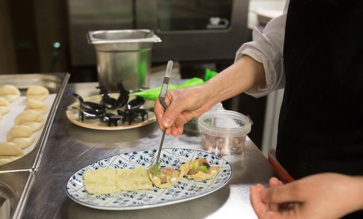 Como ya se ha mencionado, el cuchillo especial de cocina es ideal para cortar las "tres virtudes", pescado, carne y verduras. Su afilado lo hace perfecto para cortar con precisión finas lonchas de tejidos delicados como el salmón o incluso el pez globo. Incluso las verduras más rebeldes, como las cebollas, los ajos o las hierbas, se pueden picar sin problemas gracias a la hoja curvada. Por supuesto, los trozos más grandes, como los de un asado, también pueden cortarse con el cuchillo. Sin embargo, existen limitaciones. Por ejemplo, es algo más difícil cortar los alimentos en dados finos debido a la punta ancha del cuchillo.
