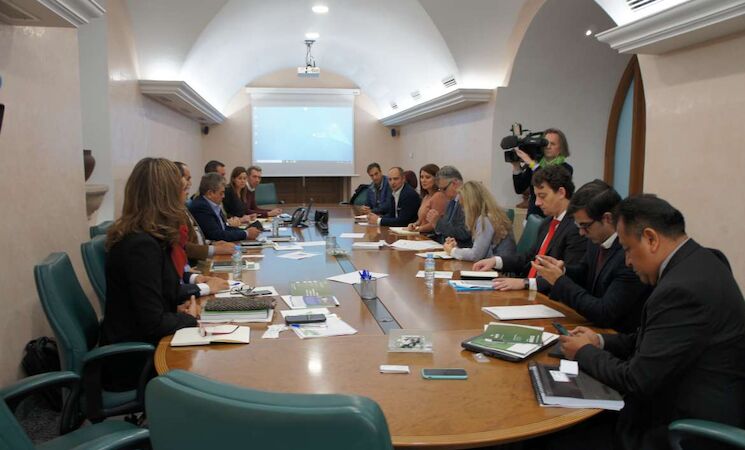 La directora general de Acción Exterior, Rosa Balas y el secretario de Ciencia, Tecnología e Innovación de la Consejería de Economía e Infraestructuras, Jesús Alonso, han mantenido un encuentro con la delegación para dar a conocer el fomento en la región de la I+D+i especialmente en el sector de la agricultura.