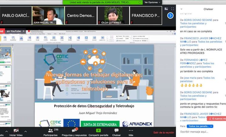 La jornada, organizada por la Consejería de Economía, Ciencia y Agenda Digital de la Junta de Extremadura a través del Centro Demostrador de las TIC (CDTIC), ha contado con la participación de expertos en transformación digital y teletrabajo que han analizado los recursos de software disponibles para ello, las recomendaciones para optimizar sus resultados y las normas que regulan su implantación.
