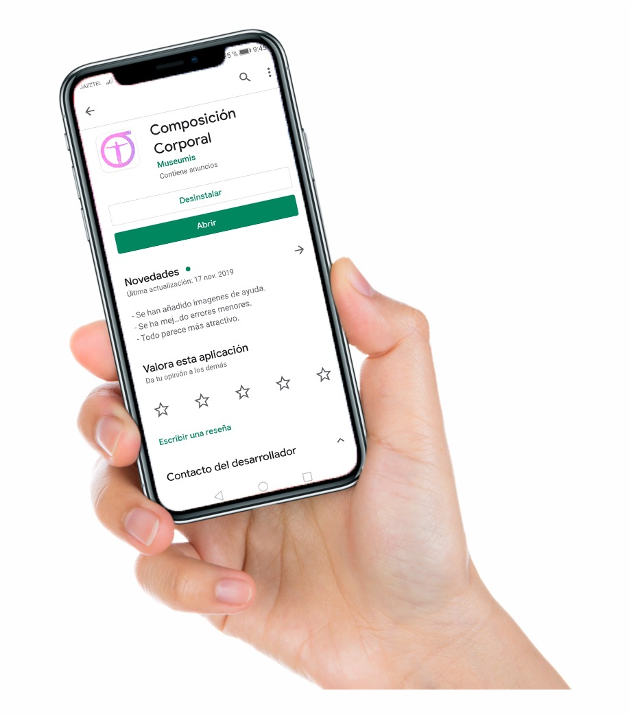 A su vez, “Composición Corporal” es una APP de antropometría, desarrollada por profesionales en actividad física y deporte, cuyo objetivo es “ayudar” al individuo en el control de su salud y su forma física. Para ello, engloba las principales medidas antropométricas validadas científicamente para tener una estimación fiable de tu estado físico.