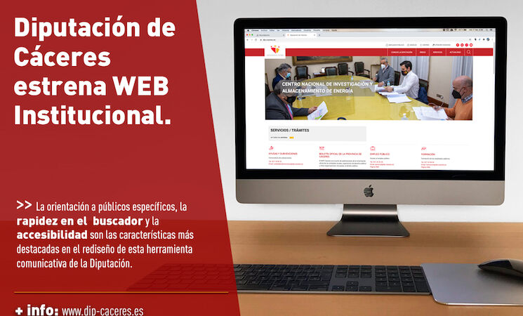 La Diputación Provincial de Cáceres ha estrenado una nueva web institucional más accesible y con una búsqueda de contenidos más rápida para facilitar el acceso a la información y la participación. El nuevo sitio corporativo sustituye al anterior portal, que ha llegado a los 15 años de vigencia, y cuenta con la doble visión de disponer de un punto informativo principal de la actividad de la institución y dar visibilidad a los servicios que la ciudadanía y empresas demandan.
