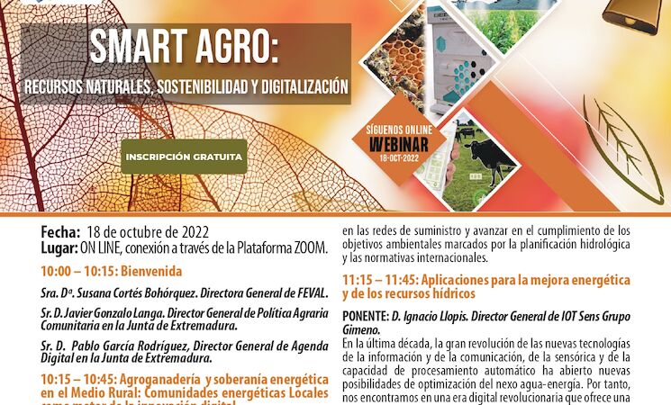 Así pues, los actos comenzarán a partir de las 10:00 horas con la intervención del director general de Agenda Digital, Pablo García, el director general de Agricultura y Ganadería, Antonio Cabezas, y la directora general de Feval, Susana Cortés.