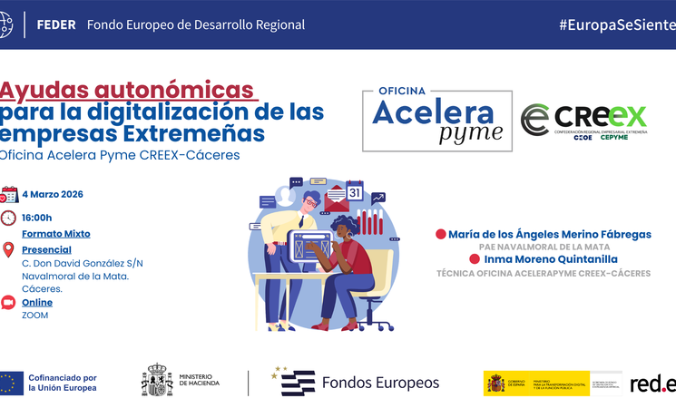 La Confederación Regional Empresarial de Extremadura (Creex) organiza, a través de la Oficina Acelera Pyme, la jornada 'Ayudas autonómicas para la digitalización de las empresas extremeñas', este miércoles, 4 de marzo, en Navalmoral de la Mata.