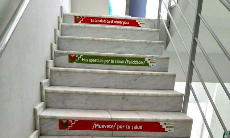 Para ello, técnicos de Salud Pública del Ministerio y de los servicios sanitarios autonómicos han elaborado una serie de pegatinas para adherir al frontal de los escalones, que contienen distintos mensajes alusivos a los beneficios del uso de las escaleras en lugar del ascensor.