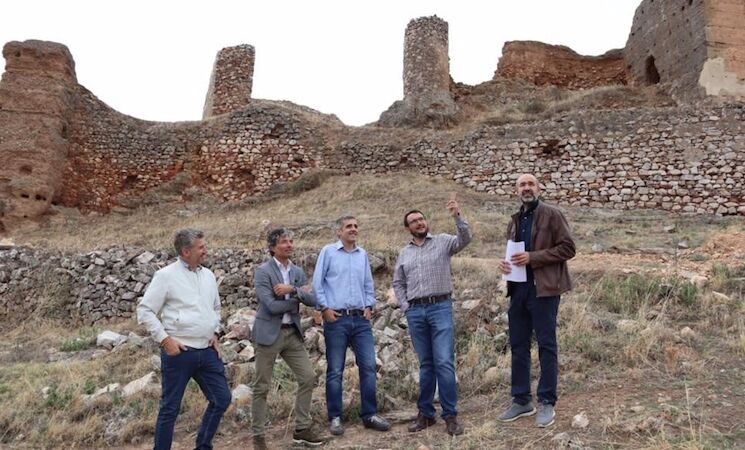 El diputado del Área de Infraestructuras, Movilidad y Ordenación del Territorio de la Diputación de Badajoz, Abel González, junto con el director de la delegación, José Carlos Cobos, el alcalde de Hornachos y diputado delegado del Área de Desarrollo Rural, Reto Demográfico y Turismo, Francisco Buenavista García y, a otros miembros de la corporación municipal han realizado una visita a la fortaleza de la localidad de Hornachos.