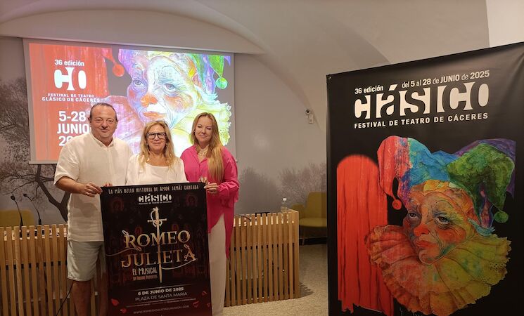 'Romeo y Julieta' ha sido presentado este jueves en rueda de prensa por la directora del espectáculo e intérprete como Julieta, Silvia Villaú; el productor del espectáculo, Tomás Padilla, y la directora del festival cacereño, Marisa Caldera.