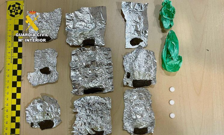Los agentes lograron recuperar dicho objeto, que resultó ser una bolsa con nueve envoltorios que contenían dosis individualizadas de hachís, además de tres comprimidos del medicamento Rivotril, un fármaco sometido a prescripción médica y cuya posesión carecía de justificación legal.
