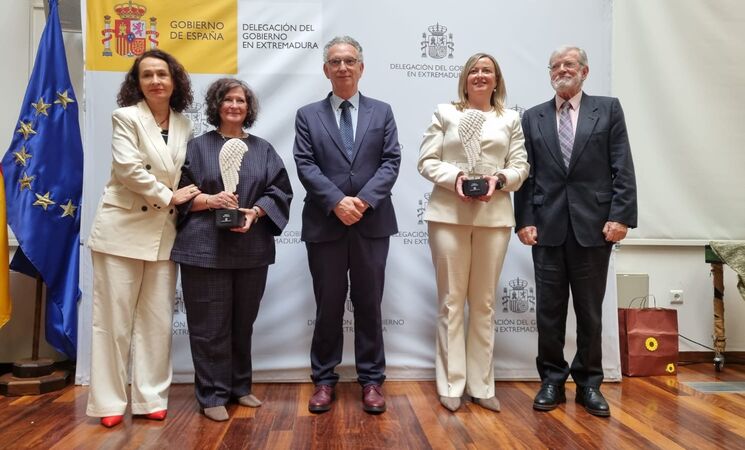 La Delegación del Gobierno en Extremadura ha entregado este jueves, día 5, los galardones 'Mujeres que rompen', que en esta ocasión han distinguido a la expresidenta de la Asamblea de Extremadura Blanca Martín, por su compromiso por la igualdad institucional, y a la presidenta de la fundación que lleva su nombre, Magdalena Moriche, por su compromiso por la inclusión de personas con inteligencia límite y discapacidad intelectual ligera.