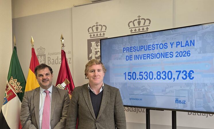 Acompañado del concejal de Economía y Hacienda, Javier Gijón, Gragera ha detallado que son cifras similares a las de 2025 y más de 150 millones de presupuesto con el objetivo de seguir haciendo crecer a Badajoz, referido a cifras y también a mejorar servicios, transformar barrios y seguir construyendo ciudad, que es "el único ánimo" que les guía y "el único propósito" que tienen desde el equipo de gobierno, que apuesta en un modelo de localidad que "avanza", "va mejorando" y "planificando su futuro".