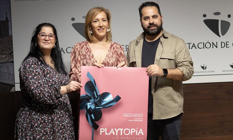La diputada de Turismo y Juventud, Elisabeth Martín, acompañada del creador y director de teatro, Pedro Luis López Bellot, de la Compañía El Teatro de las Bestias, y la actriz y productora, Nuqui Fernández, de Cíclica Teatro, han presentado este martes este proyecto que combina teatro, música, humor y audiovisuales para abordar la dependencia tecnológica en la infancia y la necesidad de recuperar el juego como espacio de crecimiento y libertad.