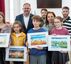 El alcalde de Mérida, Antonio Rodríguez Osuna, junto a la delegada de Urbanismo, Silvia Fernández, han entregado este jueves, en el Salón de Plenos del Ayuntamiento, los premios correspondientes a la XXIII edición del Concurso Digital Educativo Infantil organizado por Aqualia.