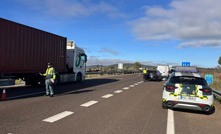 En concreto, uno de esos controles se ha realizado este martes, 14 de abril, en el kilómetro 317 de la A5, en sentido Portugal, donde han ofrecido más detalles sobre la campaña el delegado del Gobierno en Extremadura, José Luis Quintana, acompañado por el director provincial de Tráfico de Badajoz, José Luis Capilla, y el teniente coronel de la Guardia Civil del sector de Tráfico, Luis Cordero.