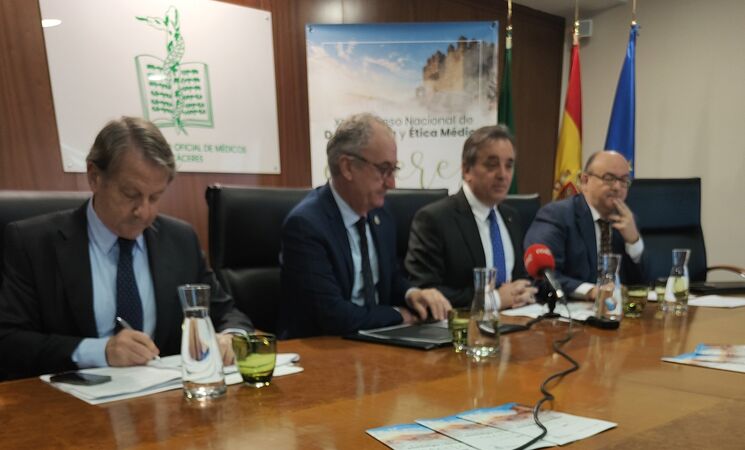 El congreso ha sido presentado este jueves en una rueda de prensa celebrada en la sede del Colegio de Médicos de Cáceres, con la participación del presidente del Consejo General de Colegios Oficiales de Médicos (CGCOM), Tomás Cobo; el presidente del Colegio de Médicos de Cáceres, Evelio Robles; el presidente de la Comisión de Ética y Deontología Médica de la OMC, José María Domínguez; y el presidente de la Comisión de Ética y Deontología del Colegio de Médicos de Cáceres, José María Montero.